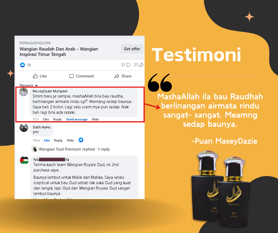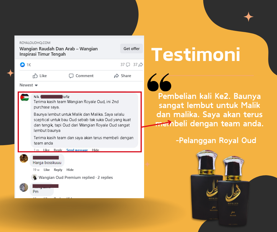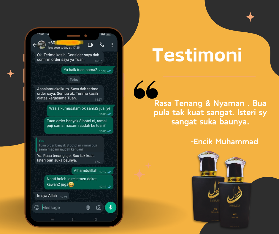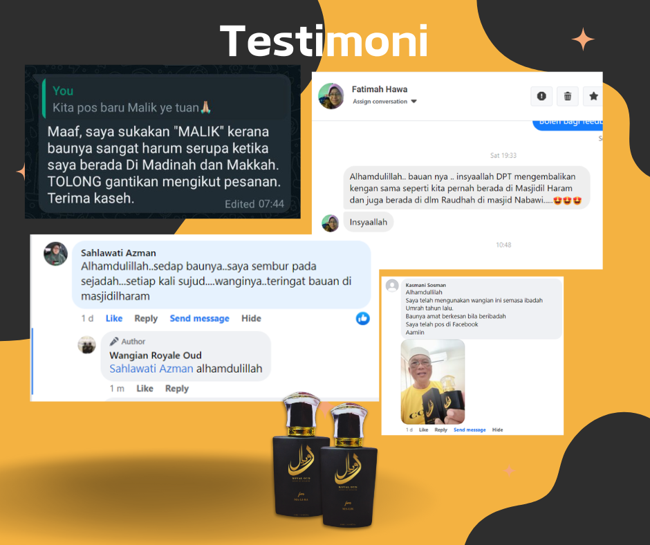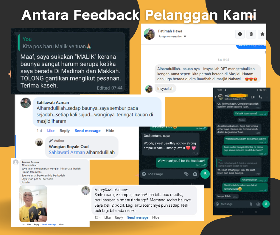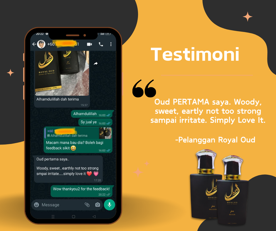 Semua pelanggan yang pernah mencuba ROYAL OUD memang berpuas hati dengan kualiti perfume dan servis dari kami.
